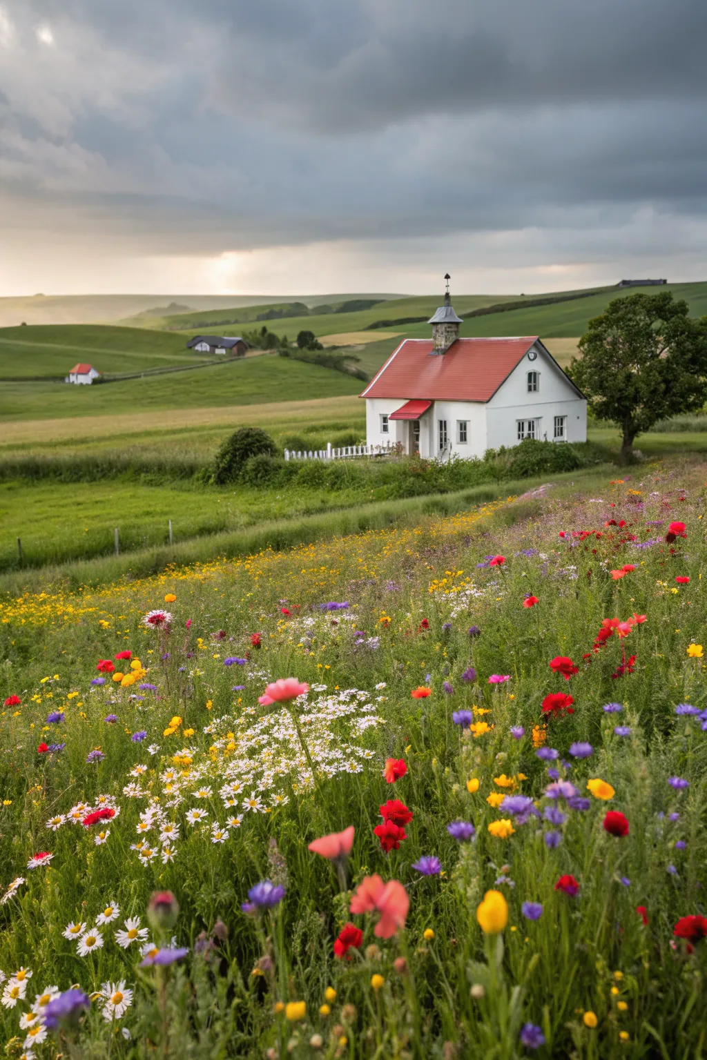 A country garden featuring a blend of flowering plants and shrubs introduces a whimsical aspect. I adore how it establishes a sense of abundance and romance.