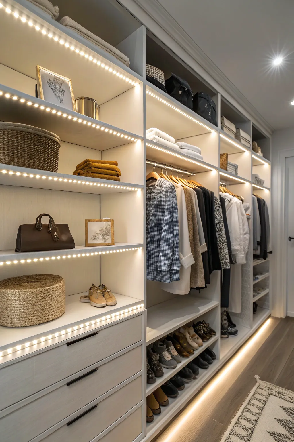 - LED Band Lighting for Shelves: Introduce a modern touch with these easy-to-install LED bands, ideal for accenting closet shelving.