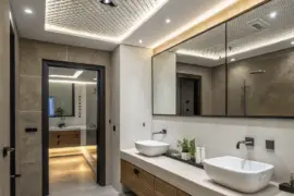 - Natural Rock Wall Panels: Enhance your bathroom’s elegance with natural rock panels, creating a timeless and rustic ambiance.