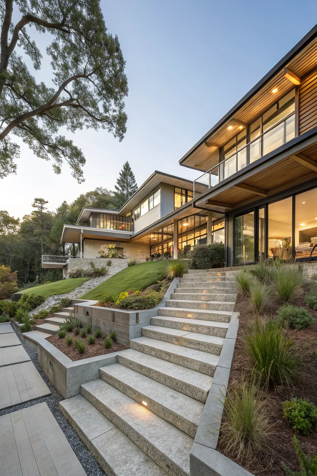 Build a tiered walkway that mirrors your home’s layout. I planned an offset path for a friend, which added dimension from the street.
