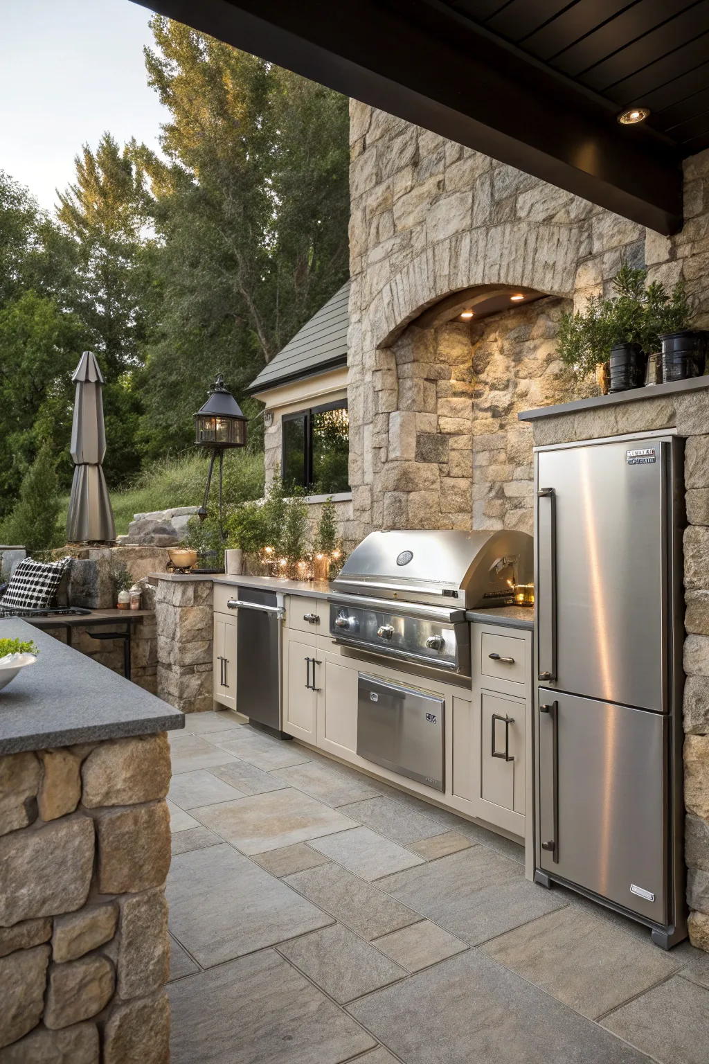 • Stone-Look Panel Sections: Elevate your kitchen aesthetic with resilient stone-look panel sections for a sophisticated outdoor space.