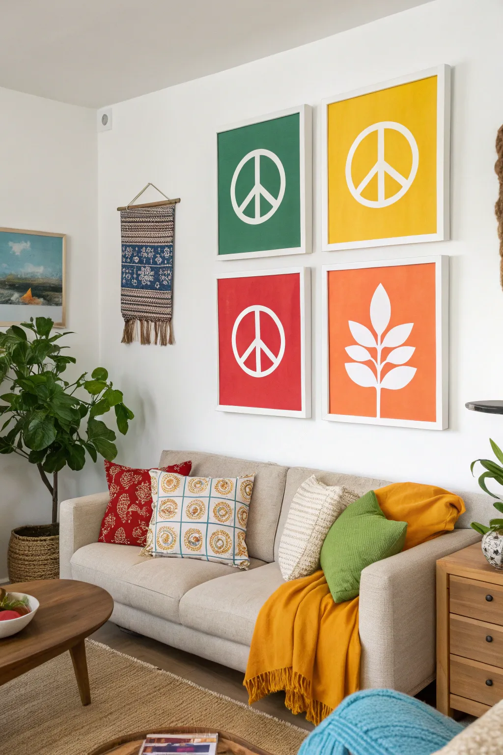 Introduce a hint of serenity with a peace symbol ornament or graphic. It’s an effortless means of imbuing your abode with a soothing aura, an element I consistently advocate for a harmonious design.