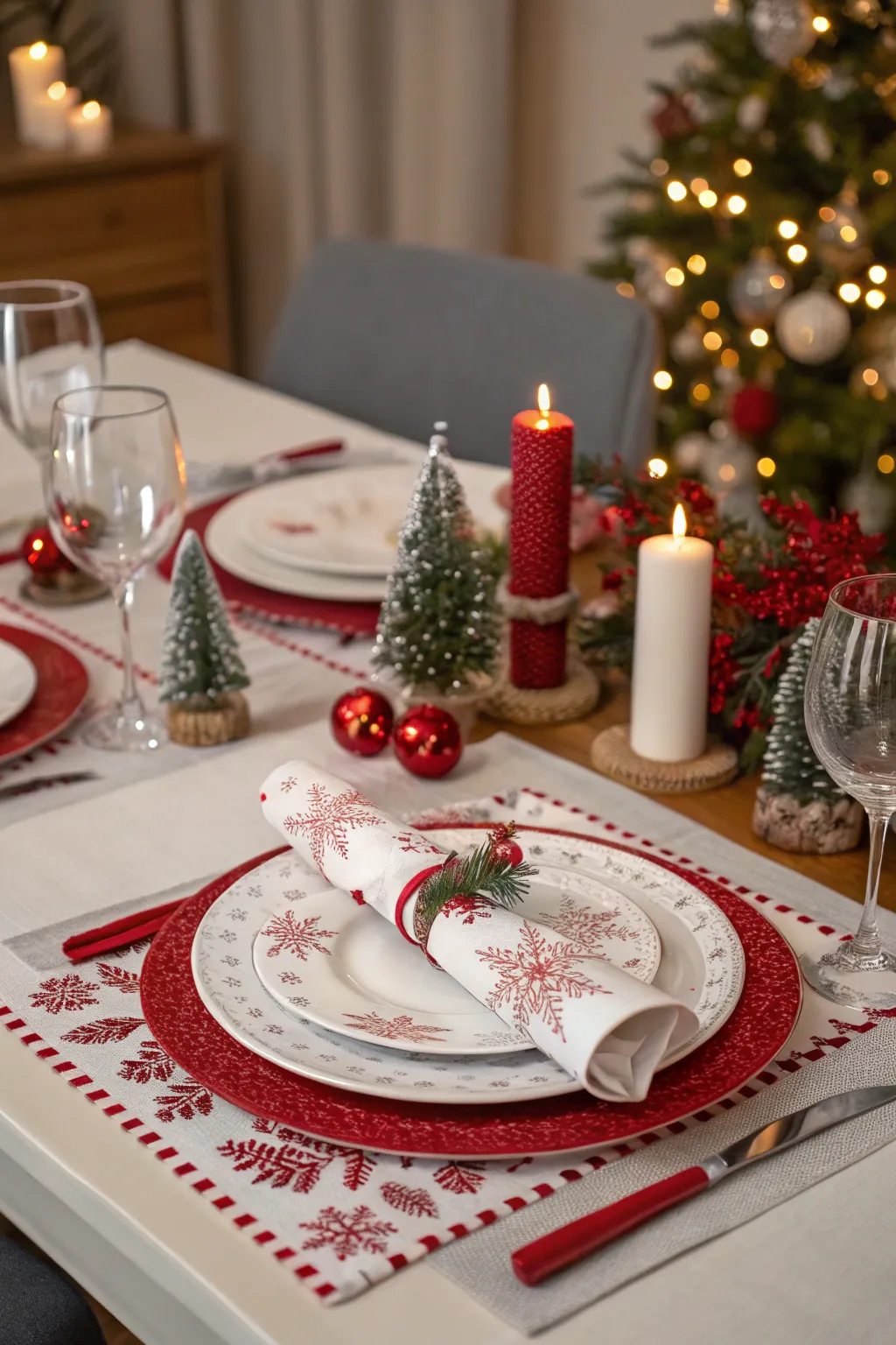 Classic Christmas colors establish the ambiance for an affectionate and welcoming table.