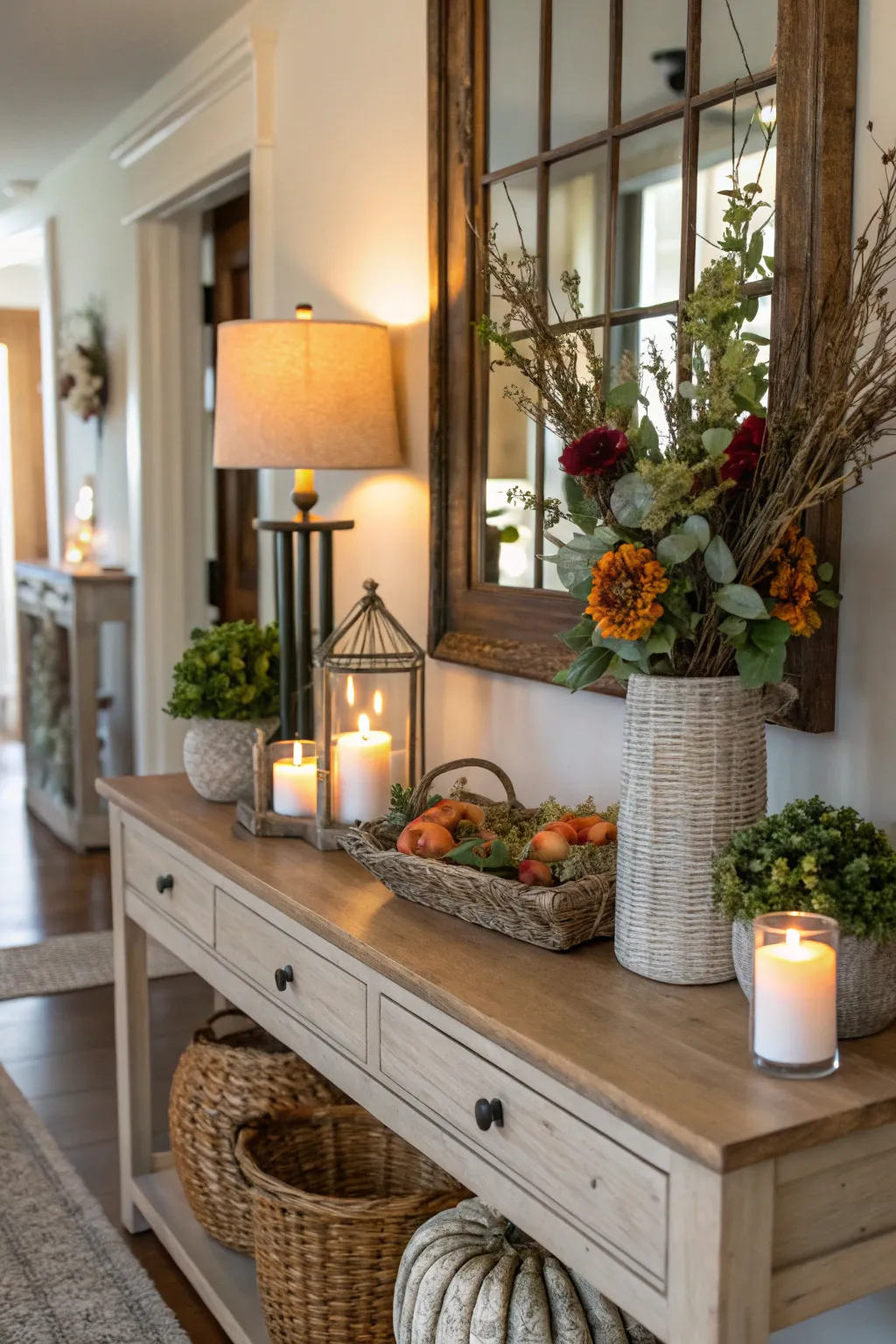 - Ornamental Support Candle Assortment: Boost warmth through stylish support candles, adding a comforting note to your entrance.