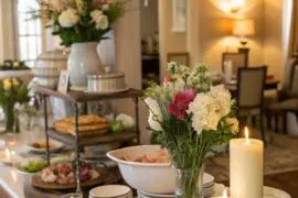 Using terracotta pots instead of traditional vases introduces a rustic chic touch. I fill them with sunflowers and baby’s breath to create a warm, inviting feel.
