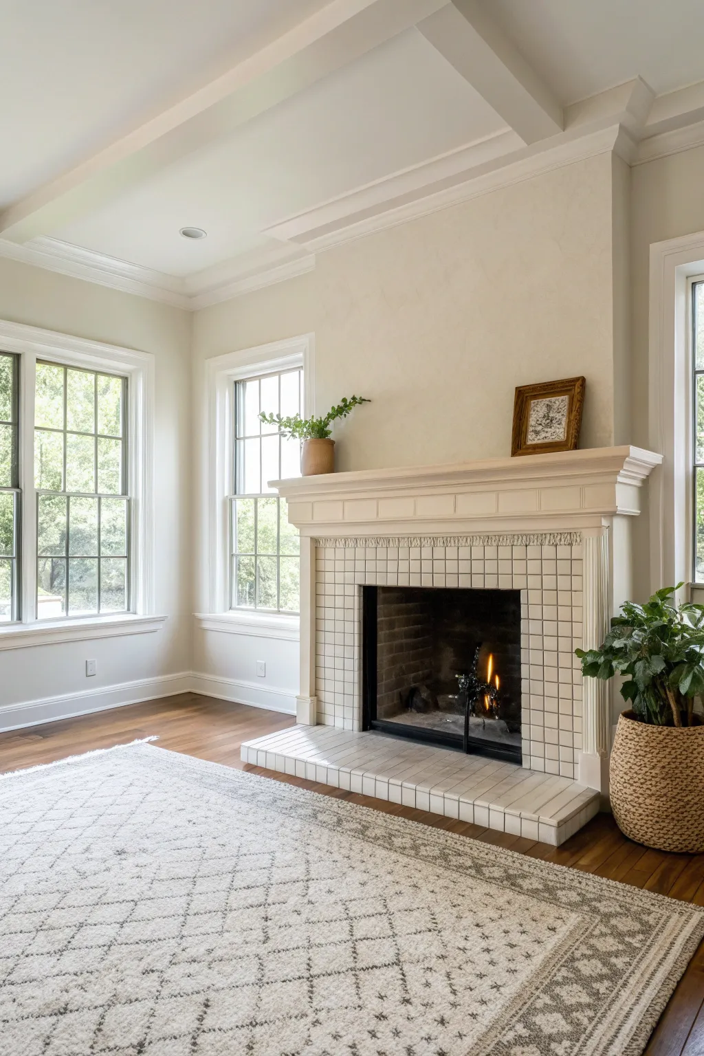 - Potted Indoor Fiddle Leaf Plant: Add height and sophistication to your fireplace area using a chic fiddle leaf plant.