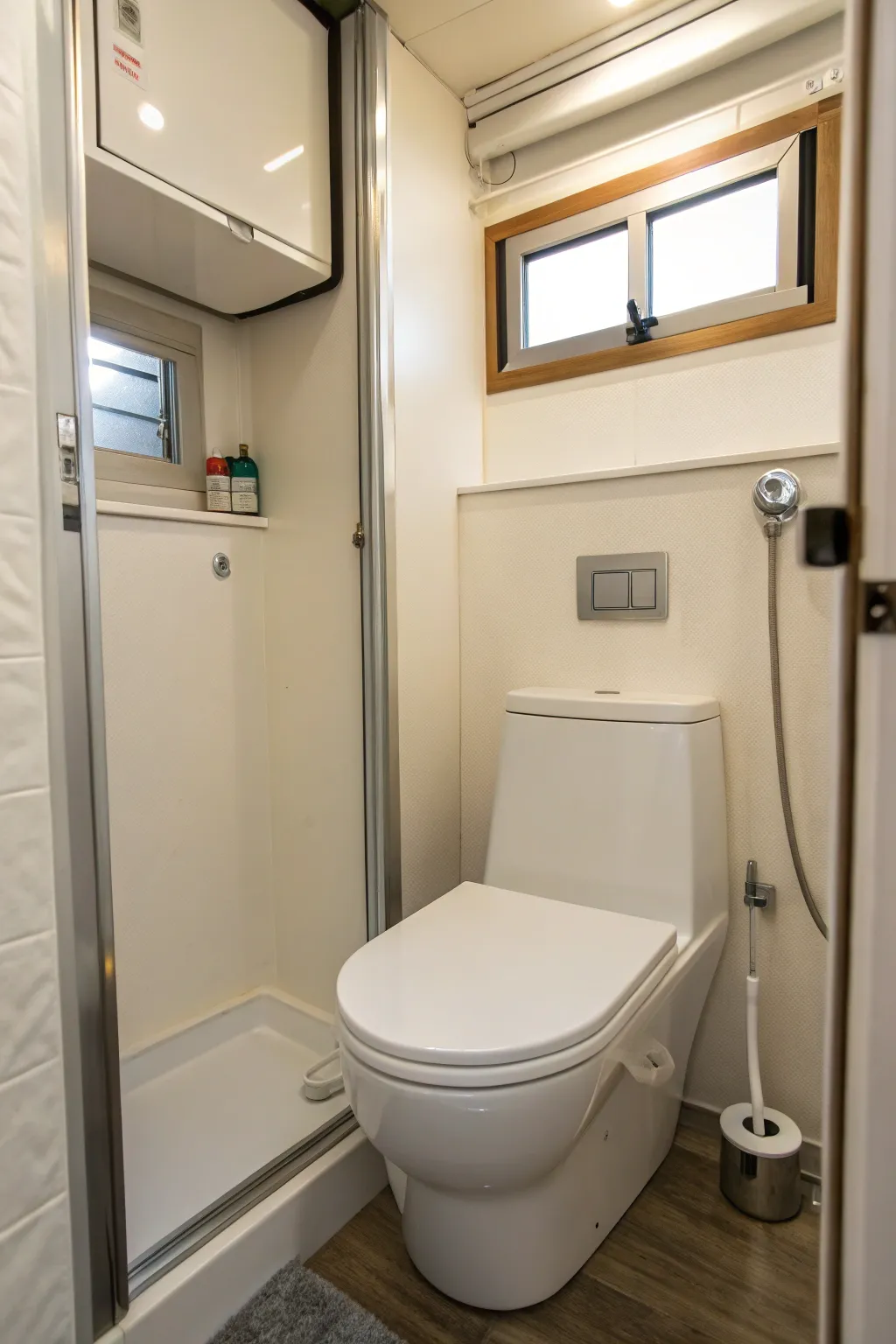 - All in One Shower and Toilet: Combine space and function with a combined shower-toilet setup in your compact bathroom.
