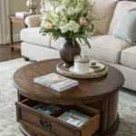 • Dark Wood Coffee Centerpiece: Incorporate elegance with a dark wood coffee centerpiece that pairs beautifully with warm neutral tones.