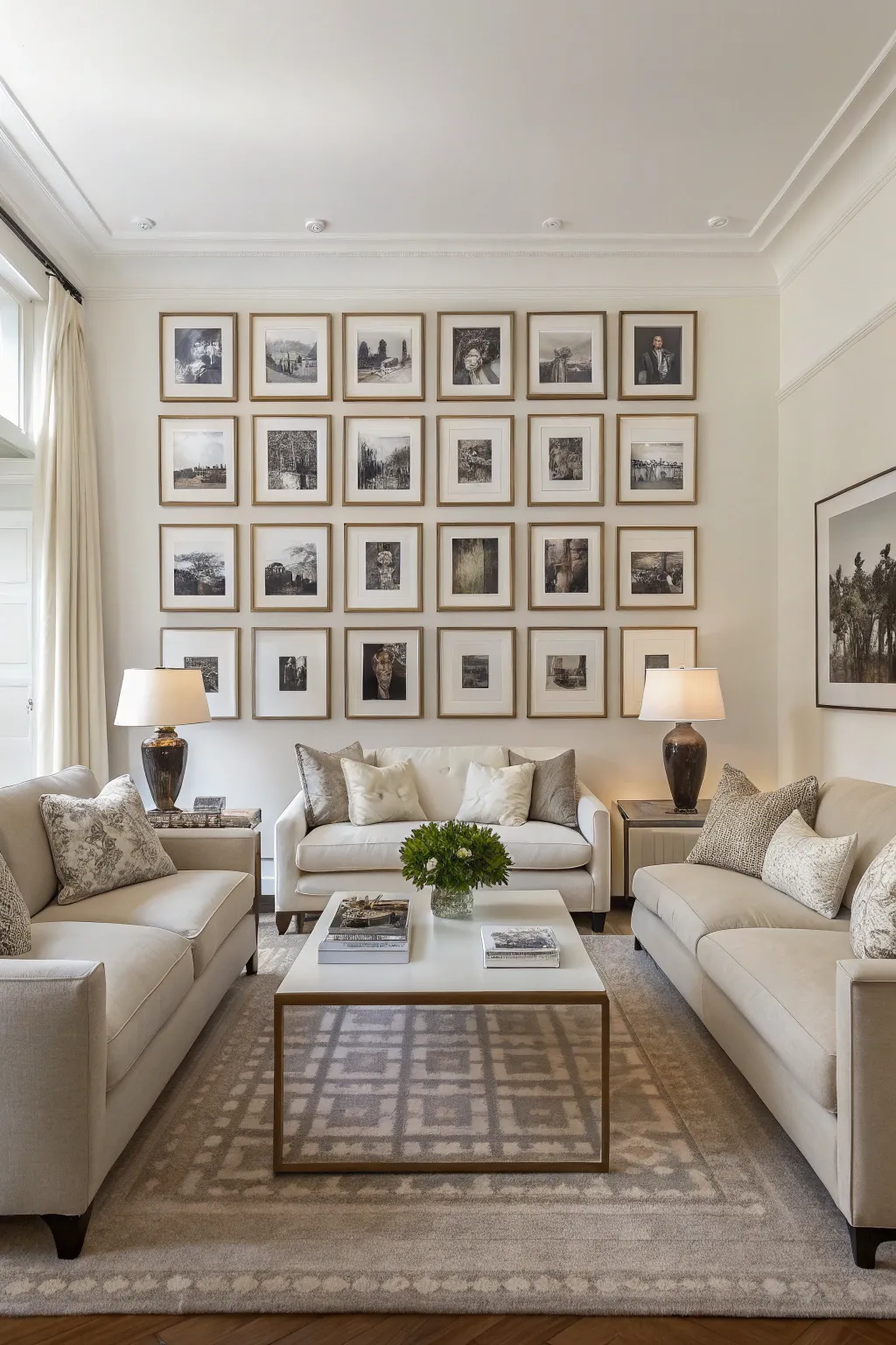 Classic gallery walls harmonize personal and curated art flawlessly.