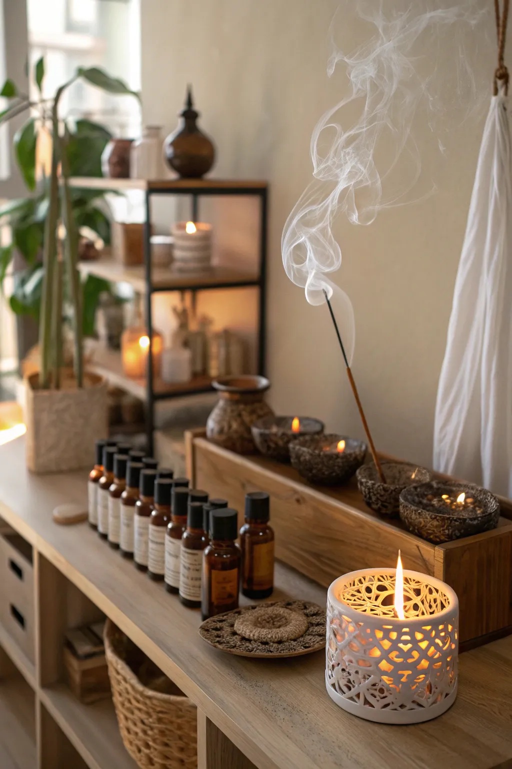 Incorporate aromas like incense or essential oils to engage the senses. These aromas can spark different moods, from calming to invigorating.