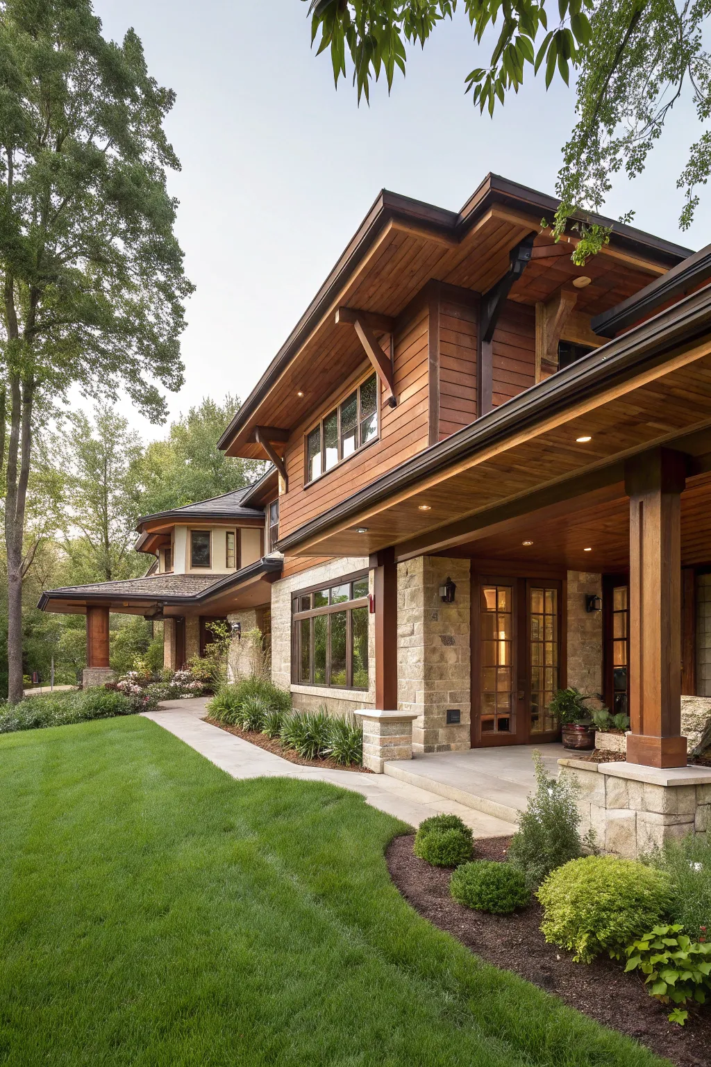 Uniting timber hues with contrasting substances such as metal can yield a striking aesthetic impression. I once merged shadowy timber underhangs with polished metal features, and the juxtaposition was purely attention-grabbing.